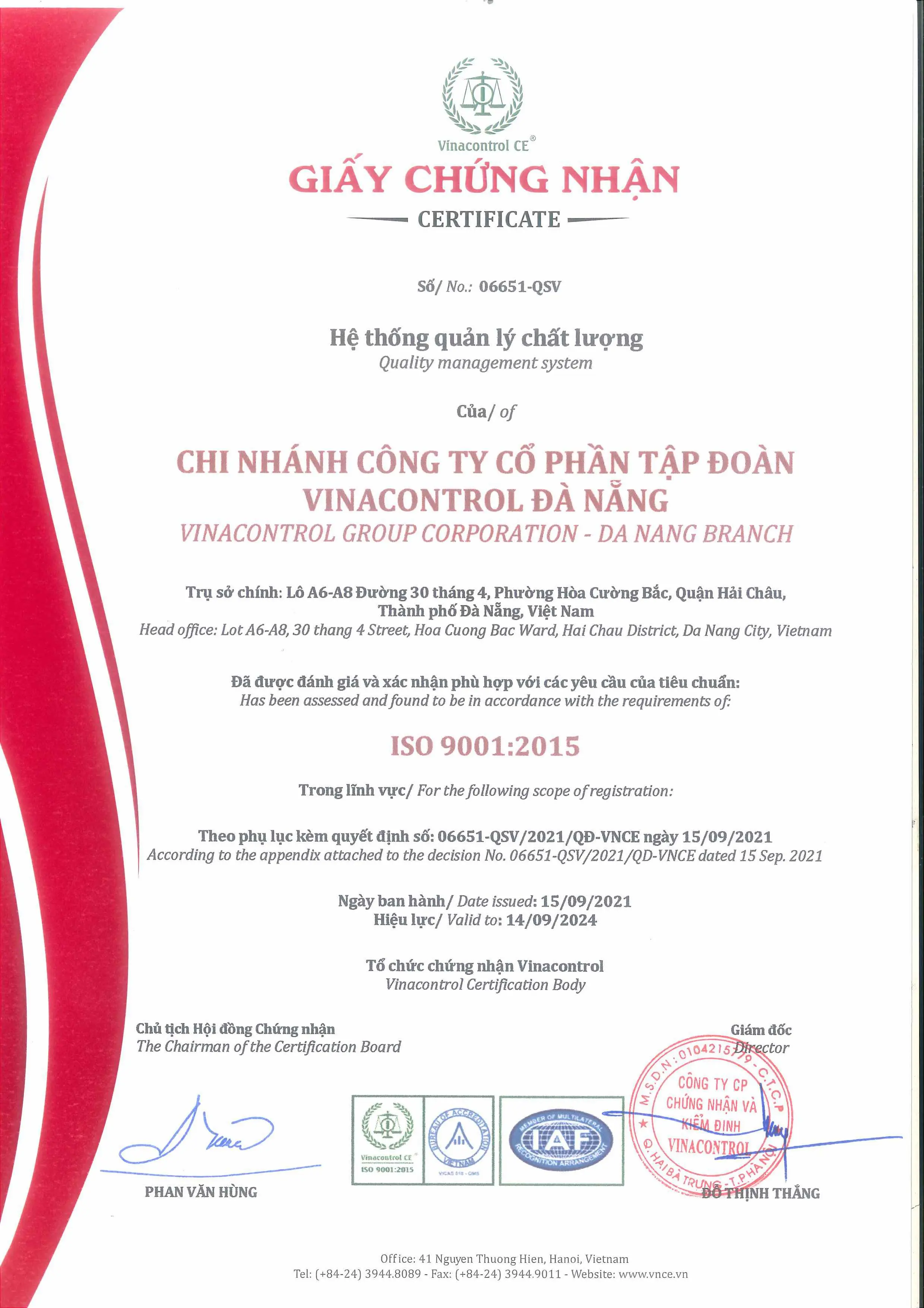 ISO 9001: 2015 - Vinacontrol Đà Nẵng
