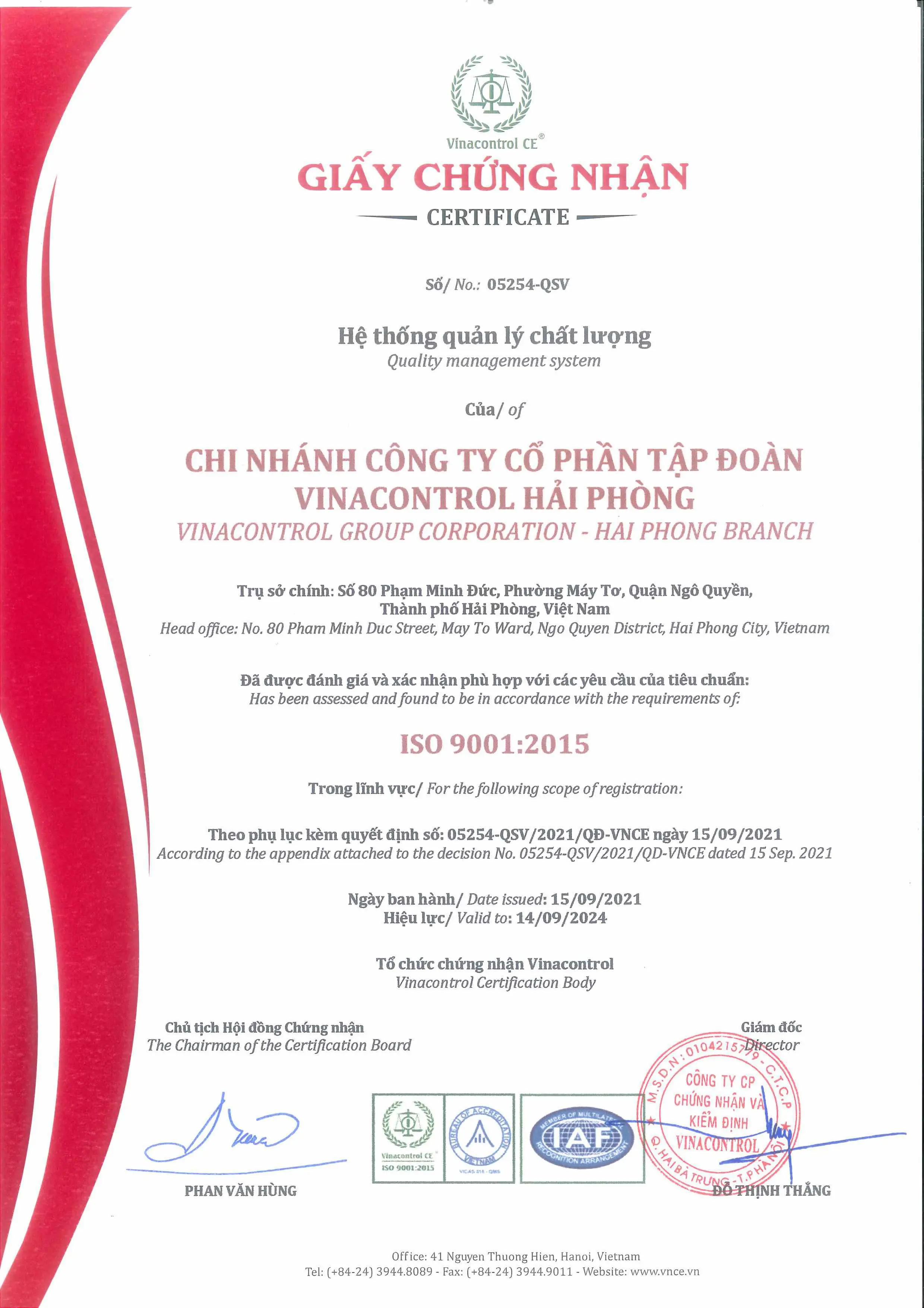 ISO 9001: 2015 - Vinacontrol Hải Phòng